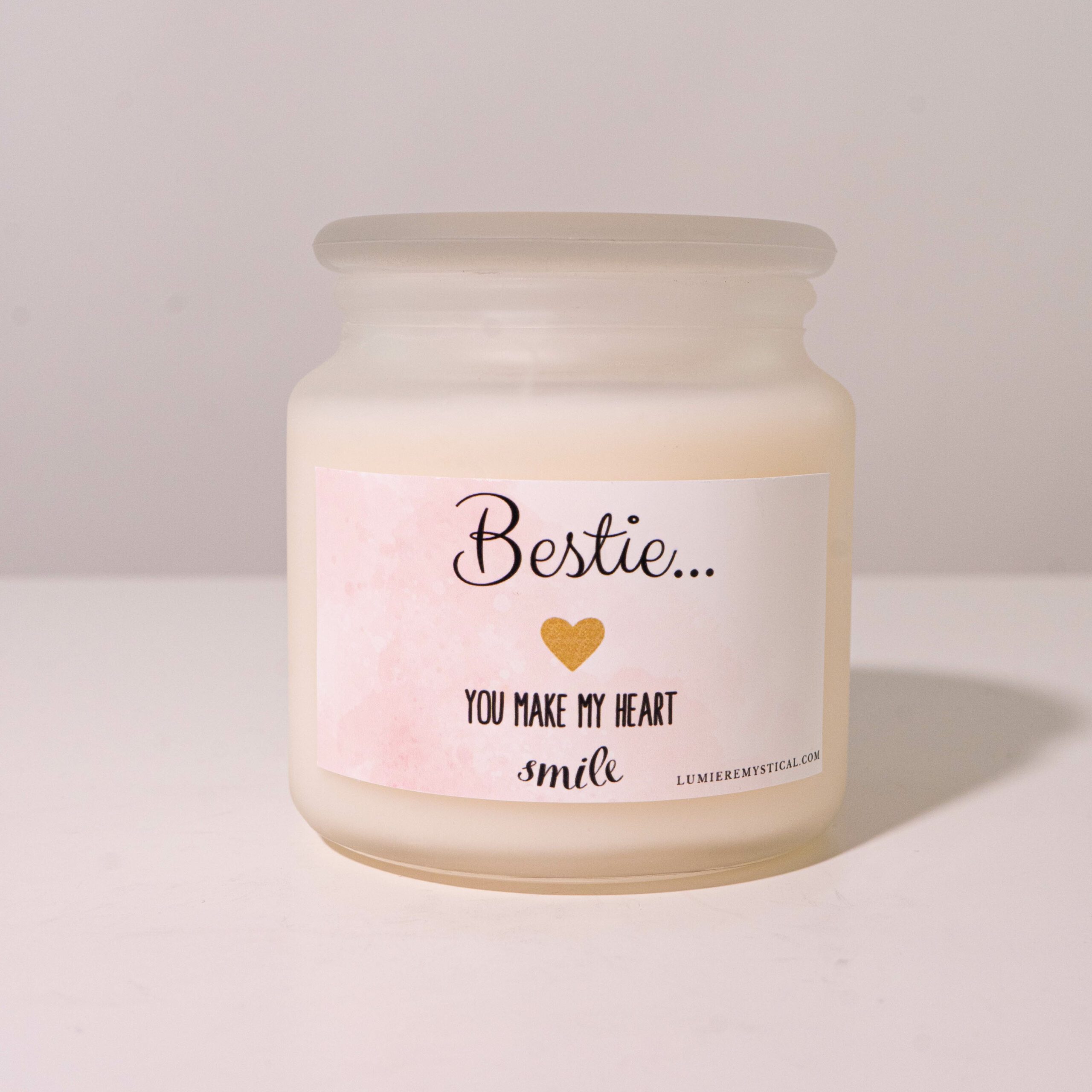 Savršena za proslavu trenutaka s vašom najboljom prijateljicom ili jednostavno podsjećajući ih koliko vam znače, ova je svijeća pažljiv poklon za vašu najbolju prijateljicu ili vedar dodatak vašem vlastitom prostoru. Sa svojim prirodnim voskom i pažljivom izradom, zasigurno će unijeti toplinu i osmijeh u vaše srce gdje god se upali.