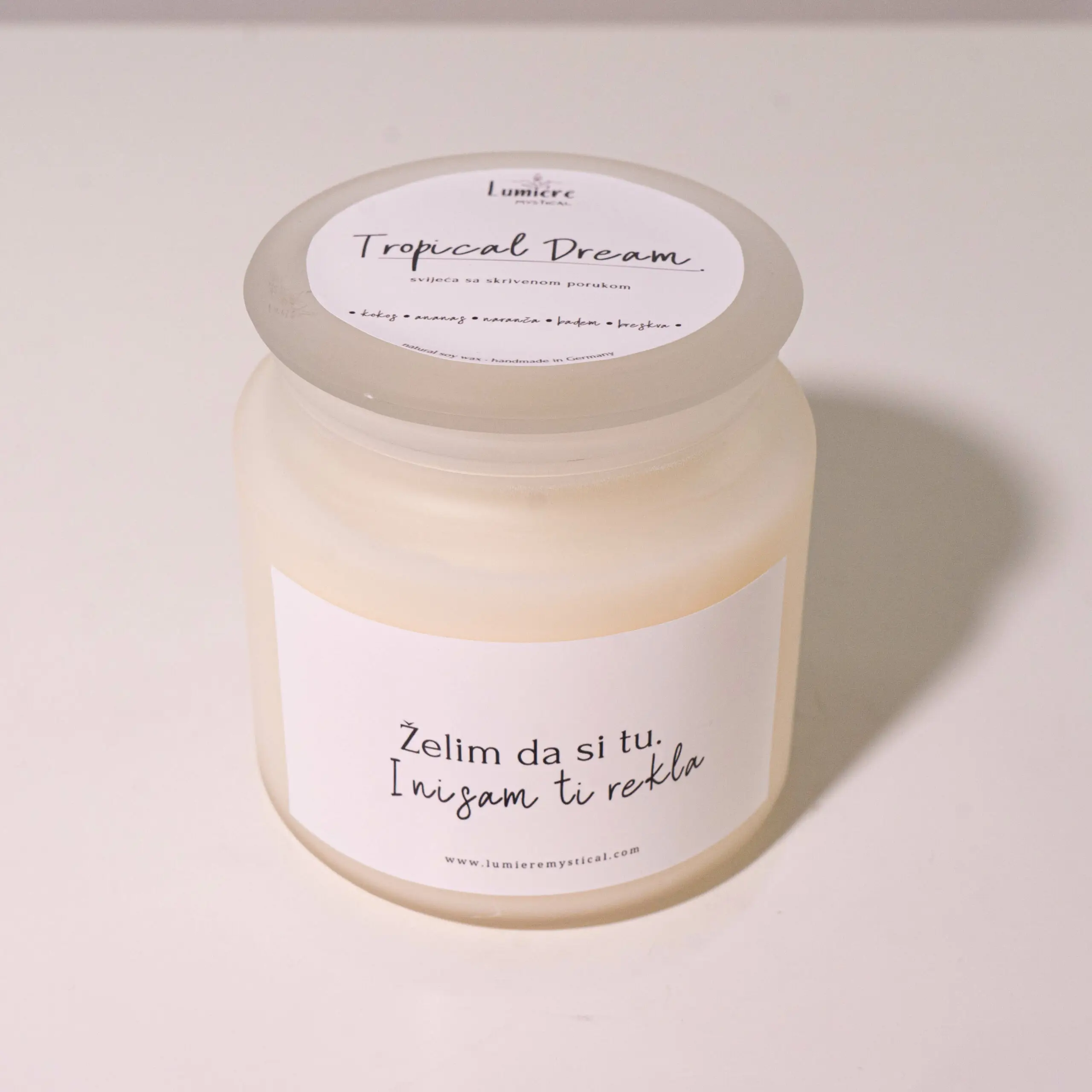 This badge indicates that the candle's labels are available in multiple languages, including English, German, and Croatian. Additionally, the secret message within the candle can be in any language of your preference.