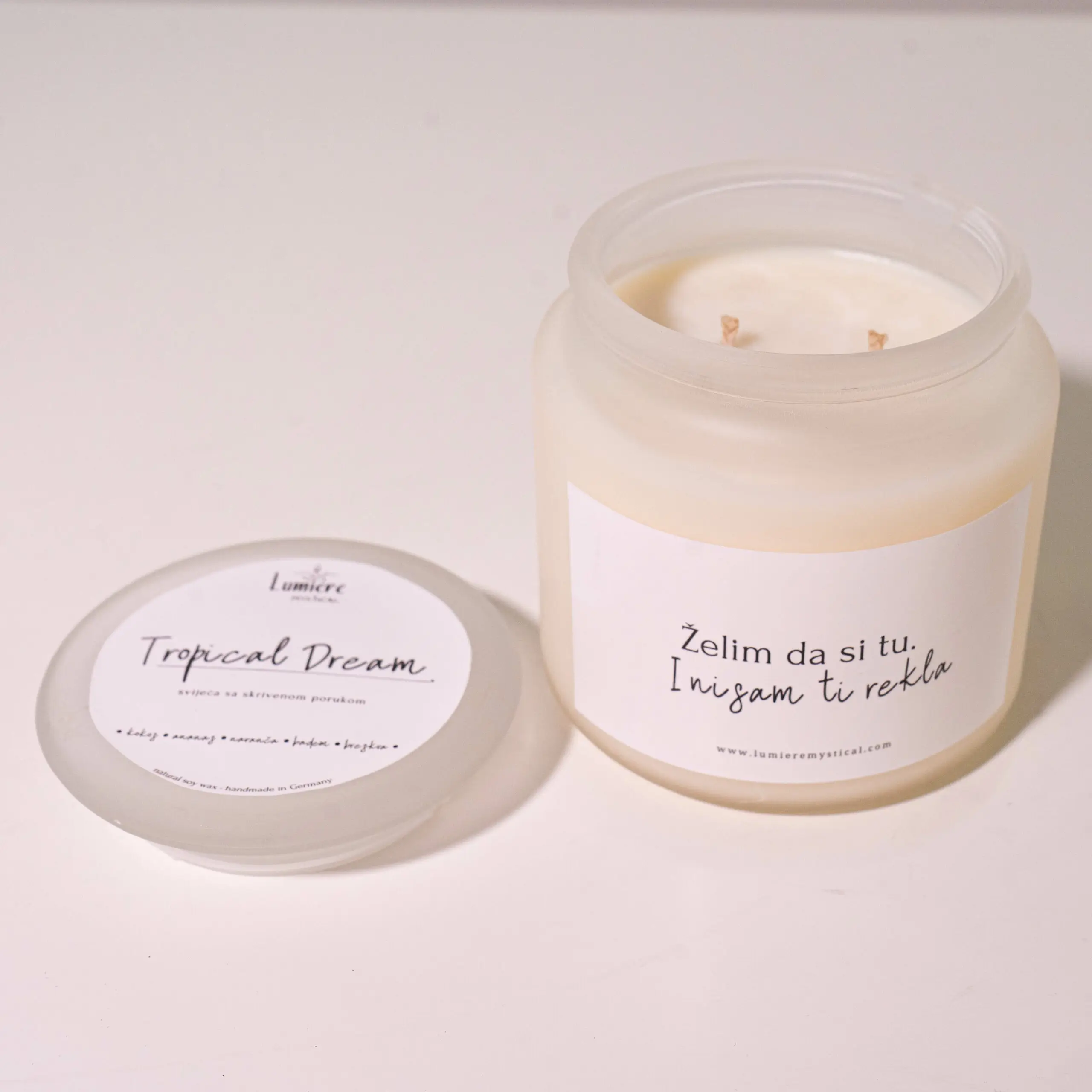 Dok svijeća gori, otkriva skrivenu poruku unutar svoje jezgre, dodajući element iznenađenja i iskrene povezanosti s vašim iskustvom. Skrivenu poruku možete prilagoditi, omogućujući vam da dodate osobni dodir s porukom koja prenosi vaše namjere, molitve ili duhovna razmišljanja.